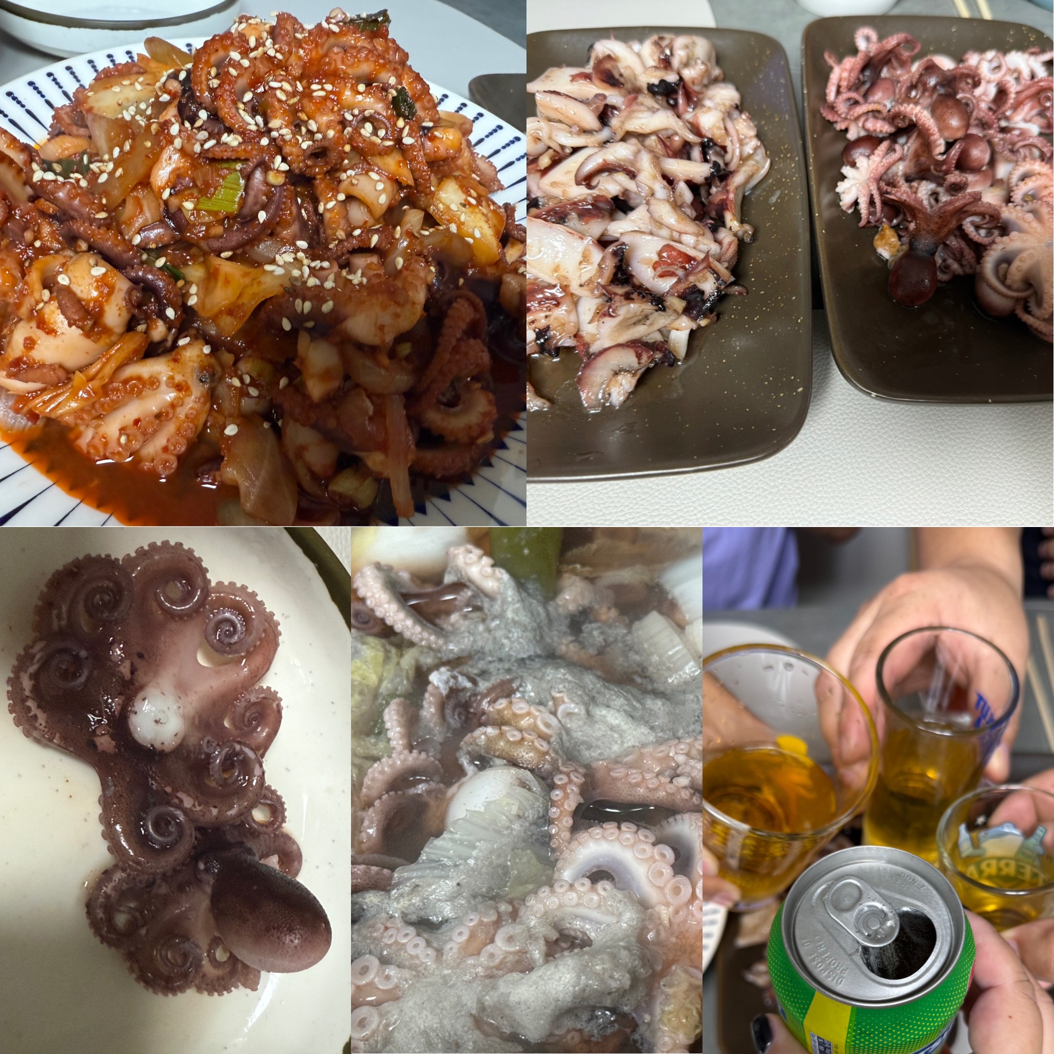집으로 돌아와 잡은 쭈꾸미를 손질하고, 저녁 메뉴를 준비했어요. 오늘 잡은 쭈꾸미로 쭈꾸미 볶음, 버터구이, 쭈꾸미찜까지! 🤤 푸짐하게 한 상 차려 지인들과 함께 소주 한잔을 기울였습니다.