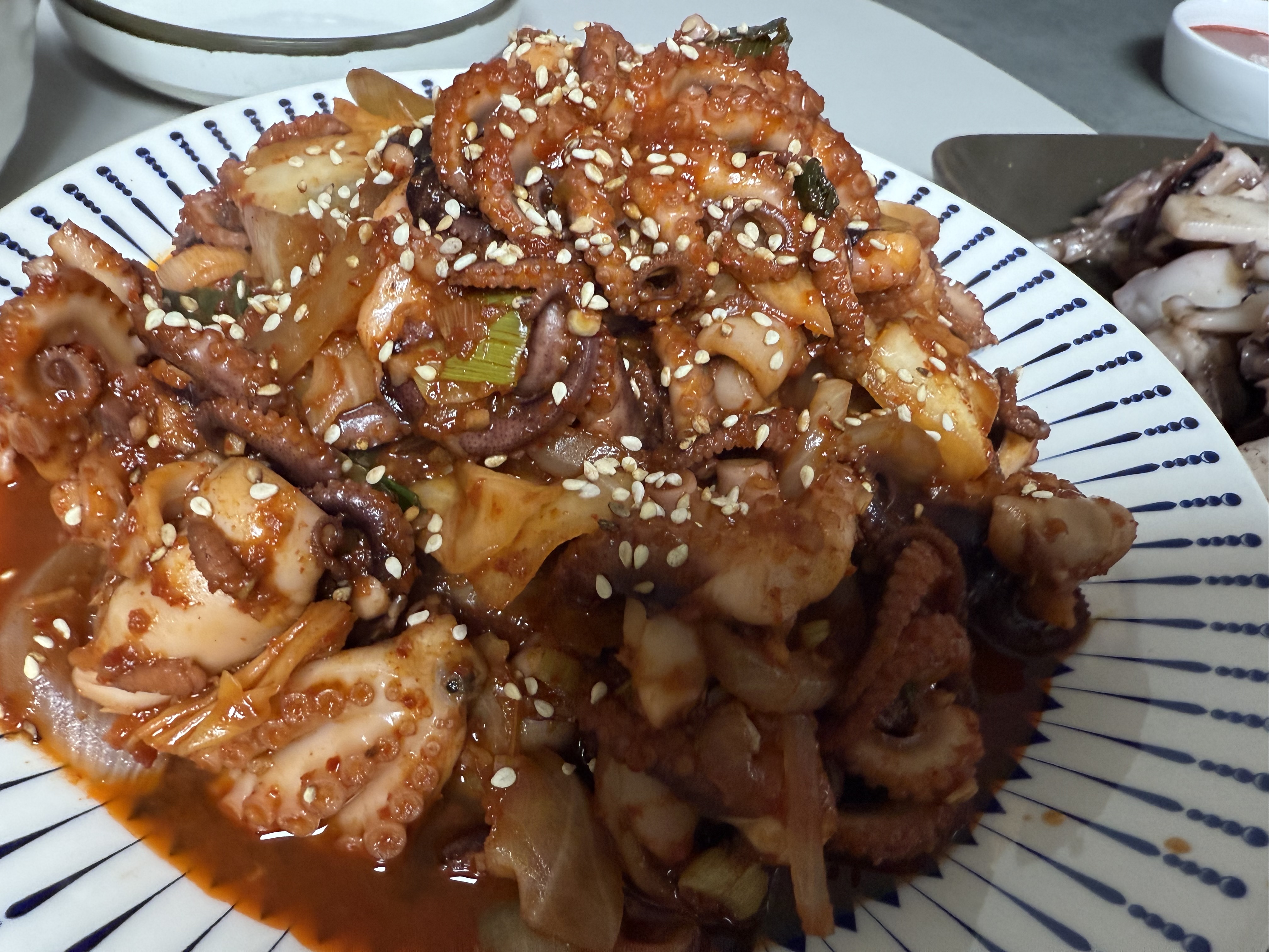 매콤달콤한 쭈꾸미 볶음과 고소한 버터구이, 담백한 찜까지! 직접 잡아서 그런지 더 맛있게 느껴지더라고요.