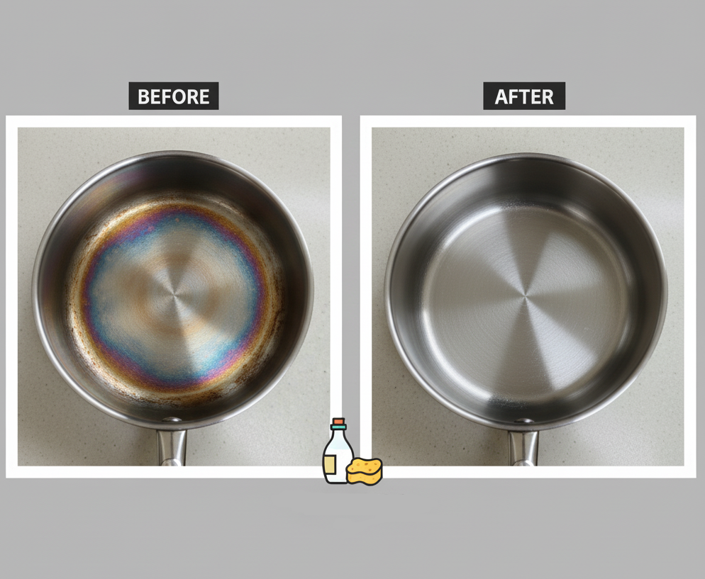 주방 살림 꿀팁 | 스테인리스 냄비 '무지개 얼룩' 제거! 버릴 필요 없는 초간단 소생술 (feat. 만능 재료)