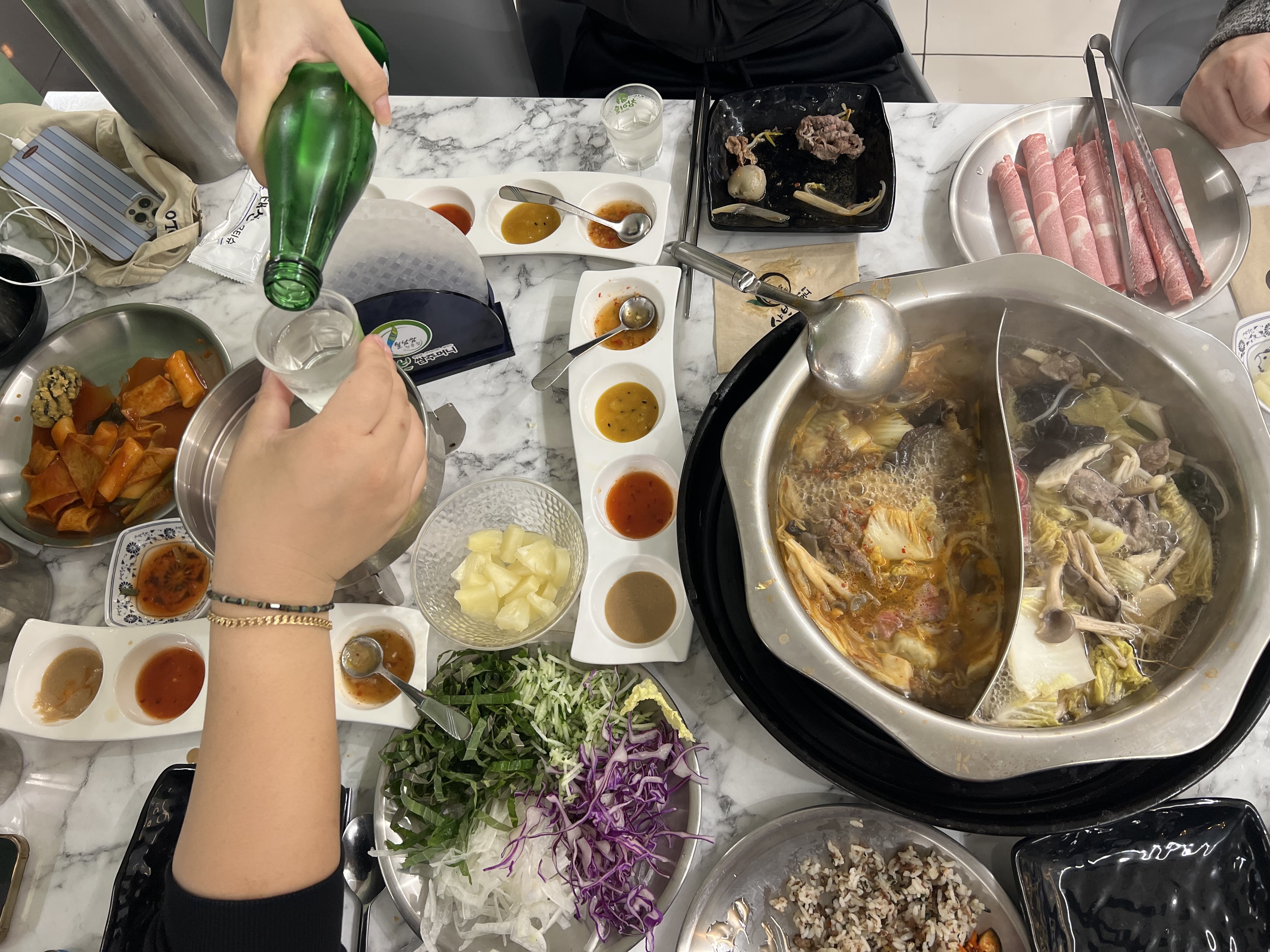금산에서의 일정을 마치고, 바쁜 일정을 쪼개 대전 롯데백화점 근처로 이동했어요. 그 이유는 바로 직장 생활 열심히 하고 있는 조카님이 맛있는 밥을 사주기로 했기 때문! 😍 저녁 메뉴는 따뜻한 국물이 일품인 샤브샤브! 신선한 고기와 버섯, 채소를 끓는 육수에 살짝 데쳐 먹으니 정말 꿀맛이었습니다. 다양한 소스에 찍어 먹는 재미도 쏠쏠했고, 볶음밥과 떡볶이 등 사이드 메뉴도 푸짐했어요. 🥢