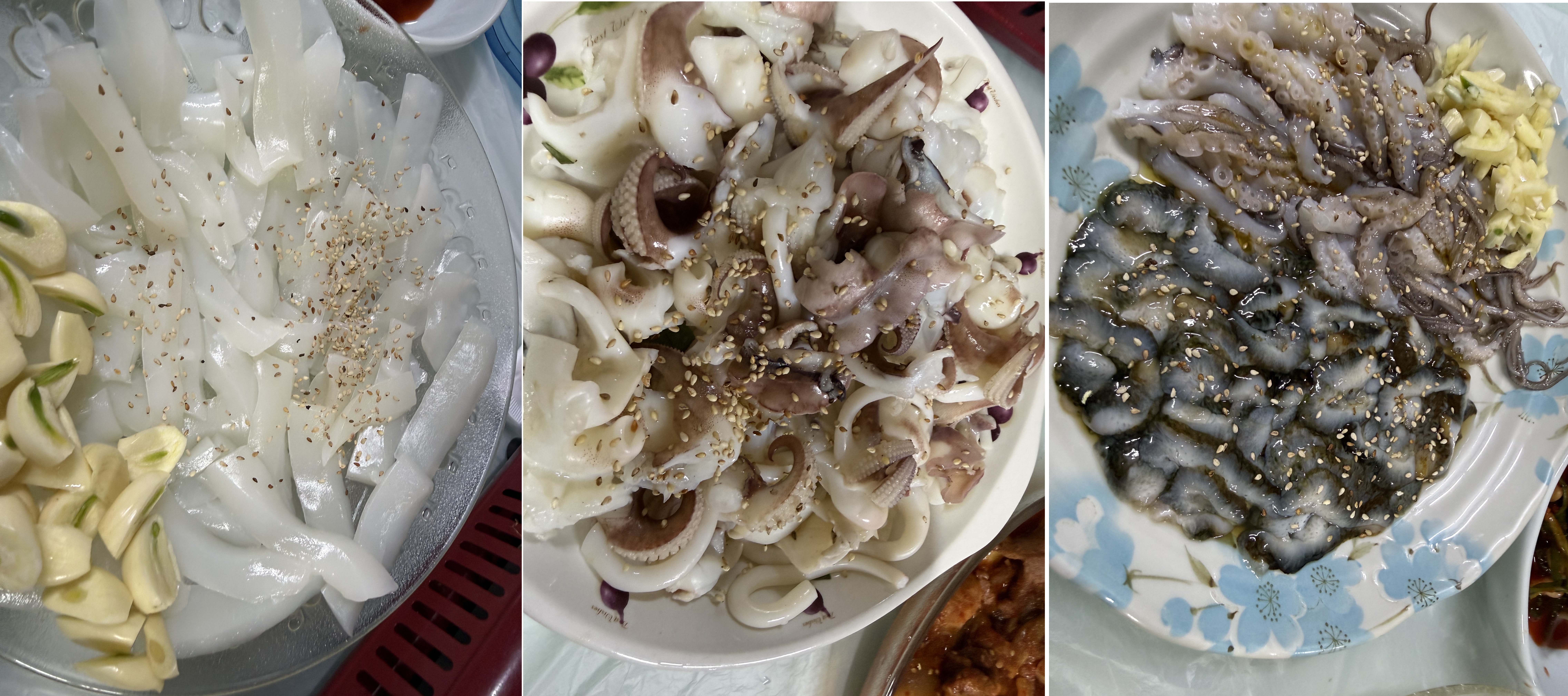 잡은 해산물은 저녁에 시골집에 들러 동생네 식구들과 함께 나누었습니다. 싱싱한 갑오징어 숙회와 회는 물론, 뜻하지 않게 잡은 해삼까지 맛볼 수 있는 풍성한 저녁이었습니다.