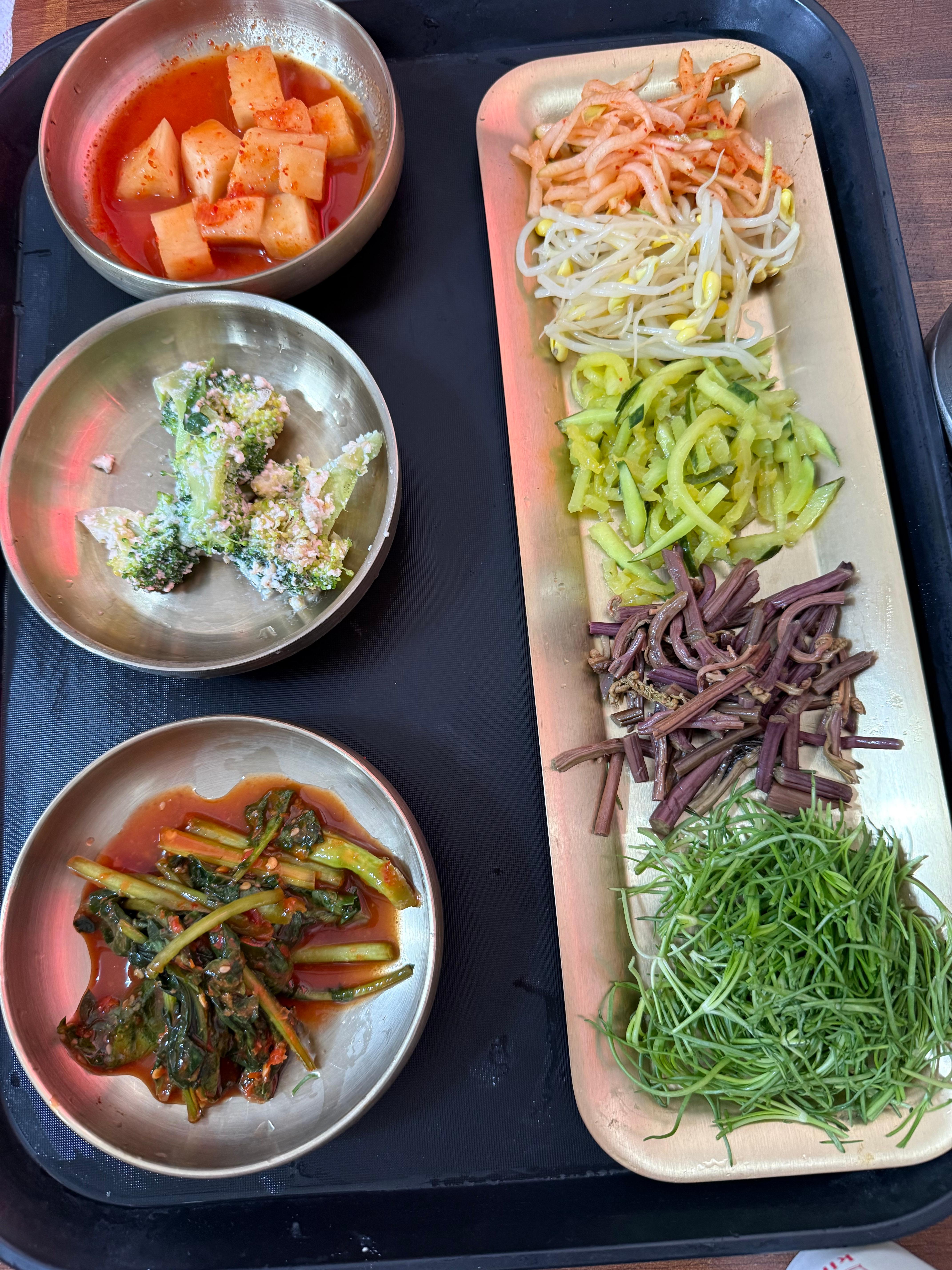 잠시 후 정갈한 밑반찬들이 깔리고, 드디어 주인공 청국장 등장! 🍲