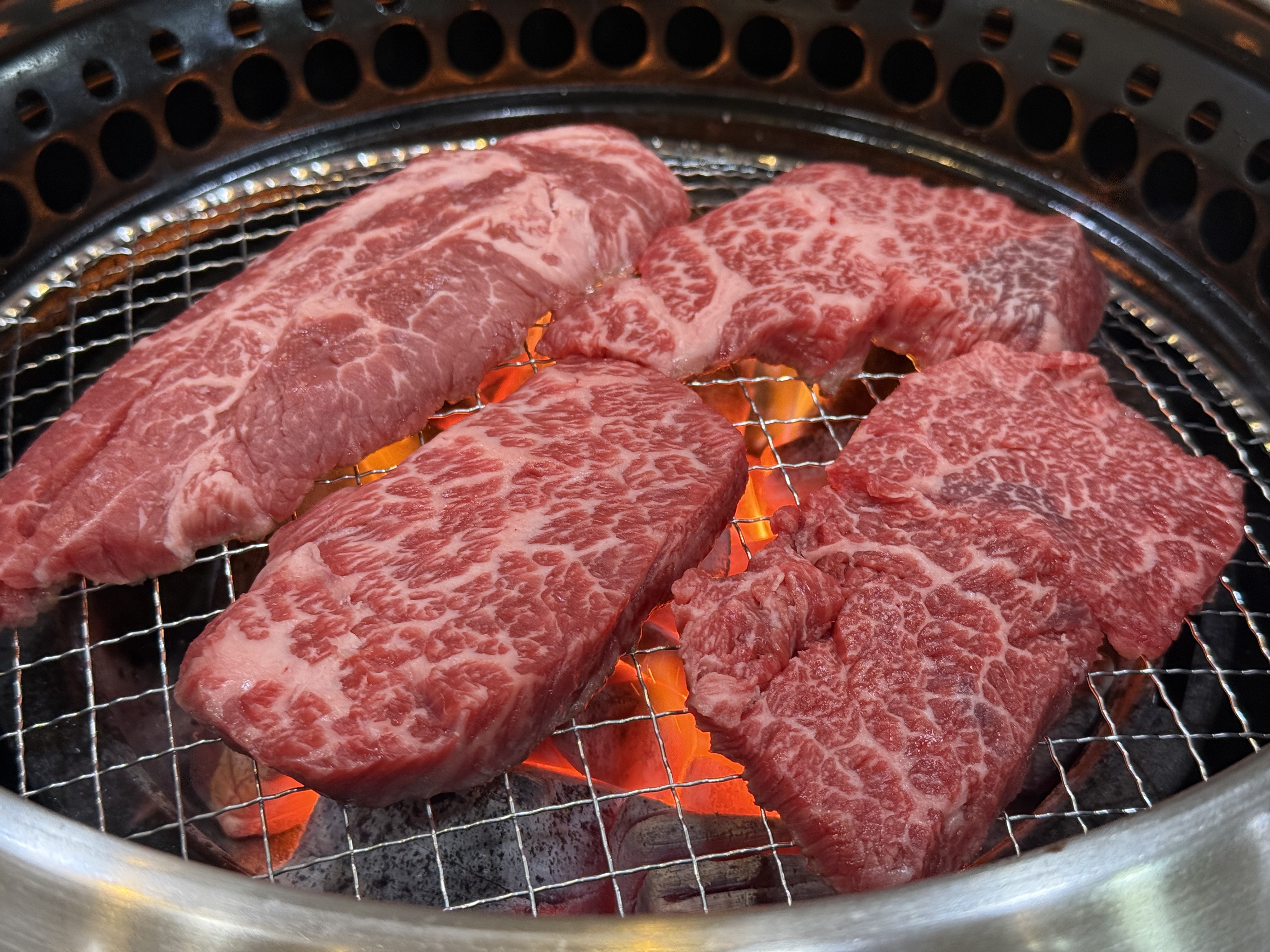 본격적으로 숯불에 고기를 구워봅니다! 🔥 지글지글 익어가는 소리만 들어도 행복해지죠.